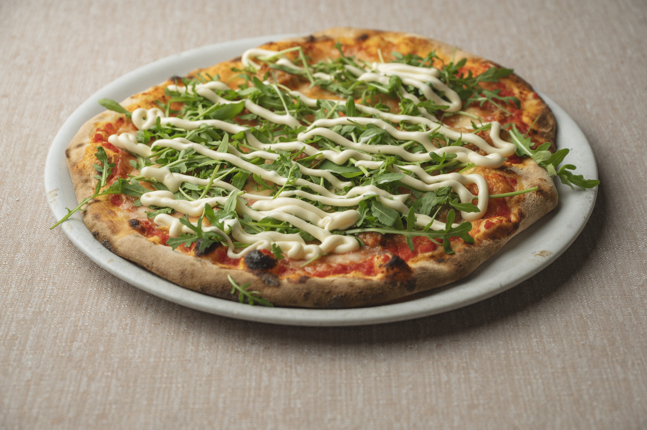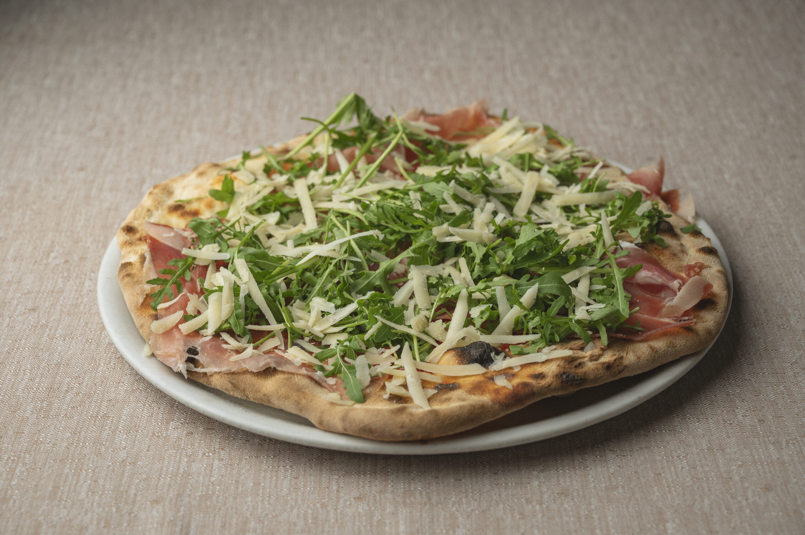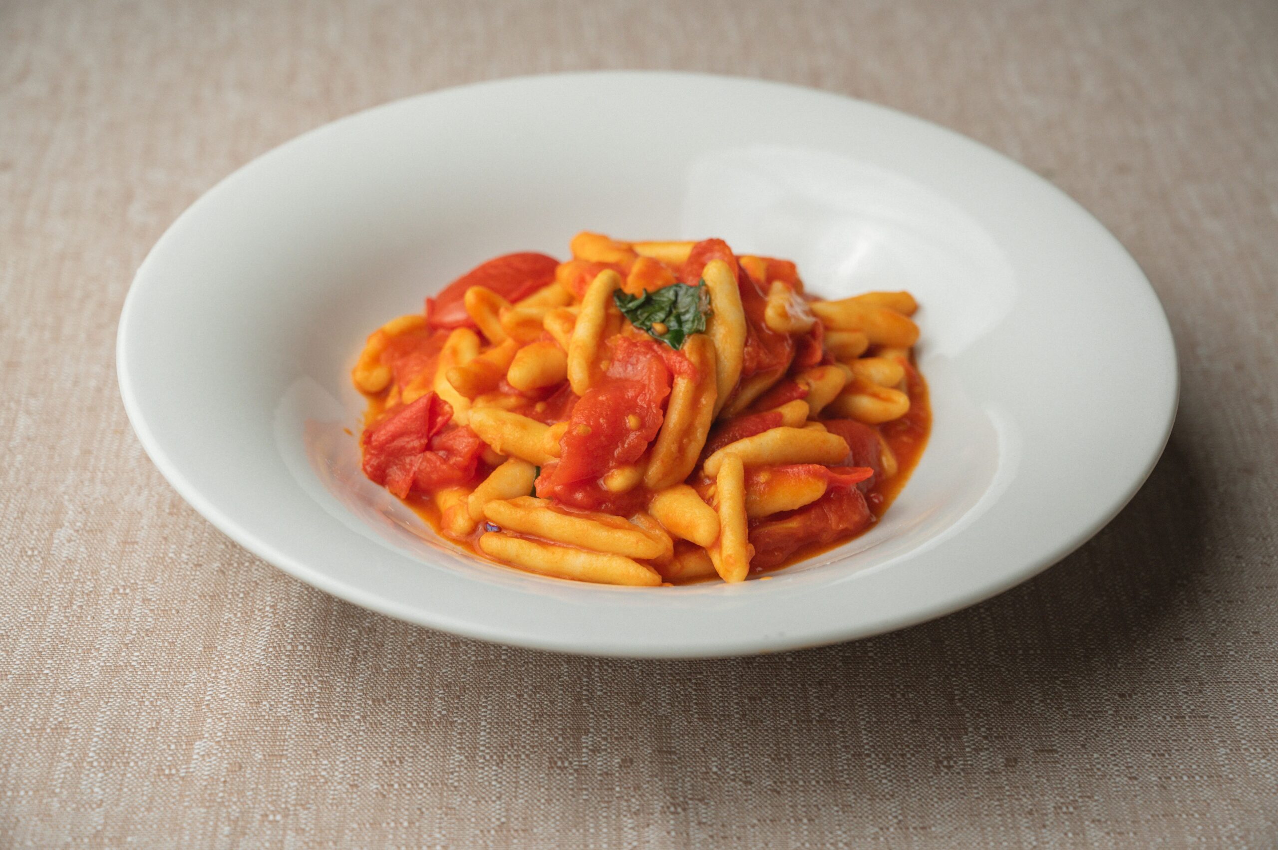con rucola, salsiccia rossa di Castelpoto e pomodorini